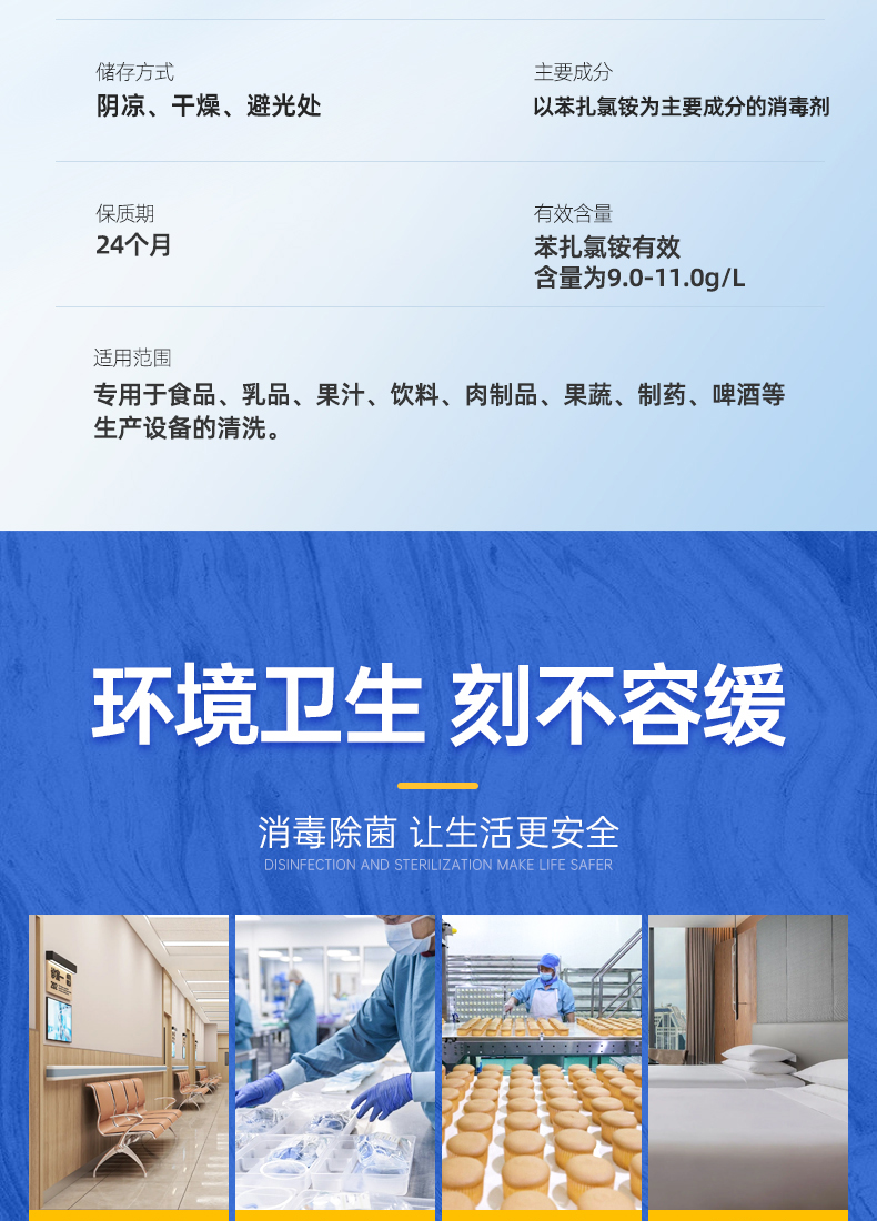 季铵盐消毒液食品工业肉制品加工油炸食品生产车间设备消毒剂